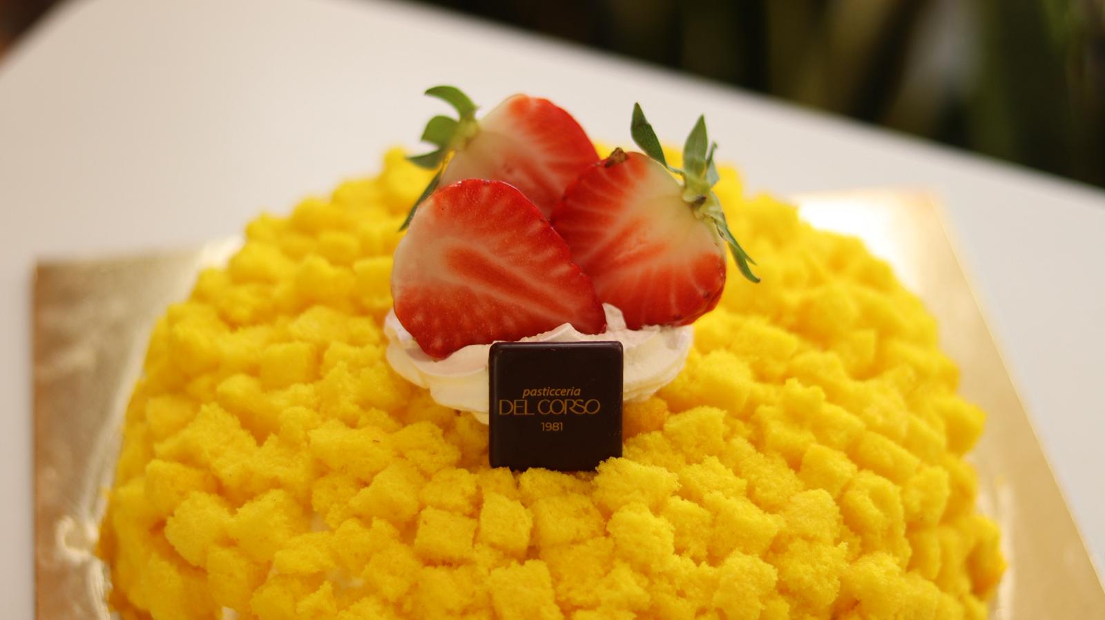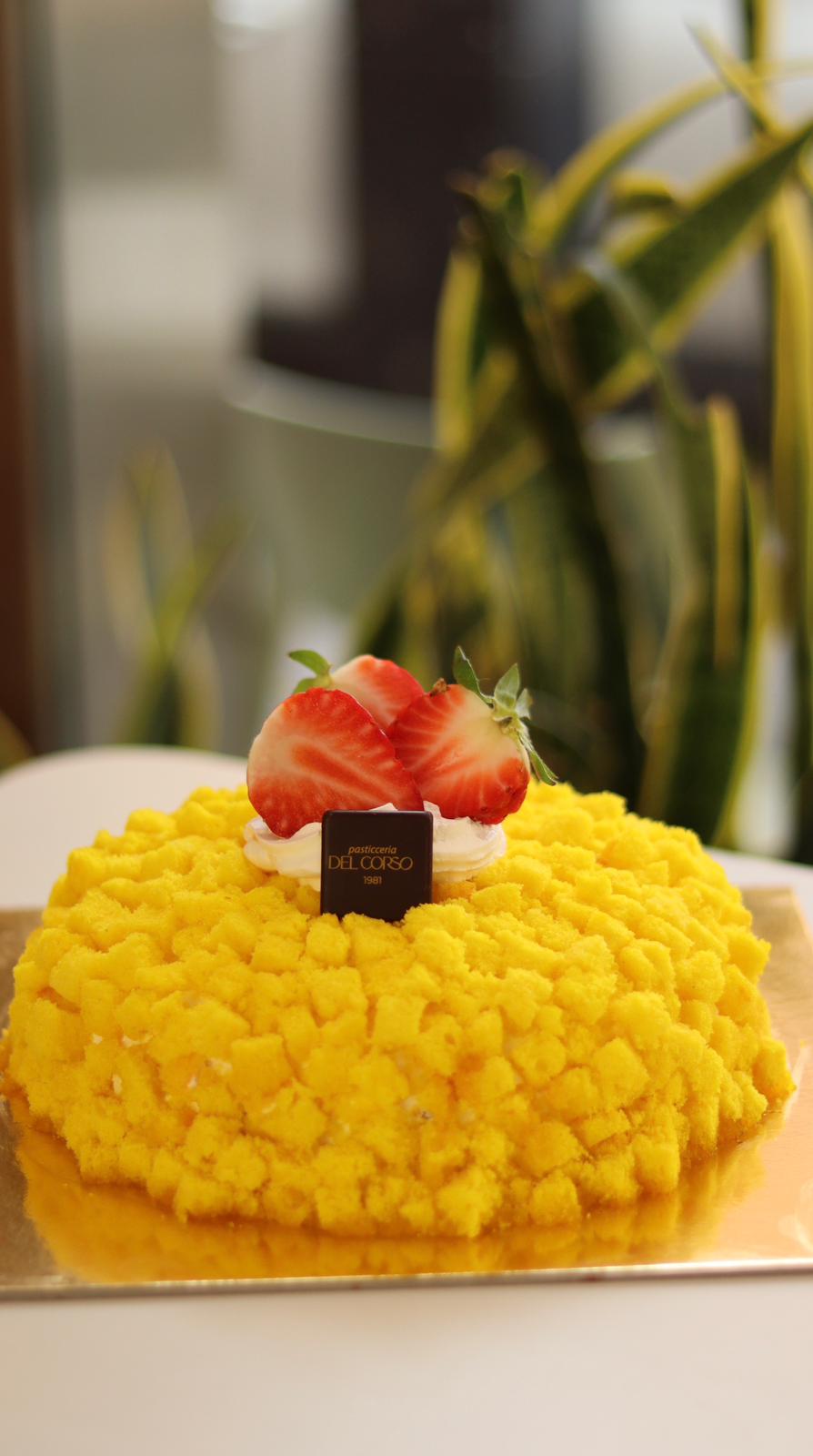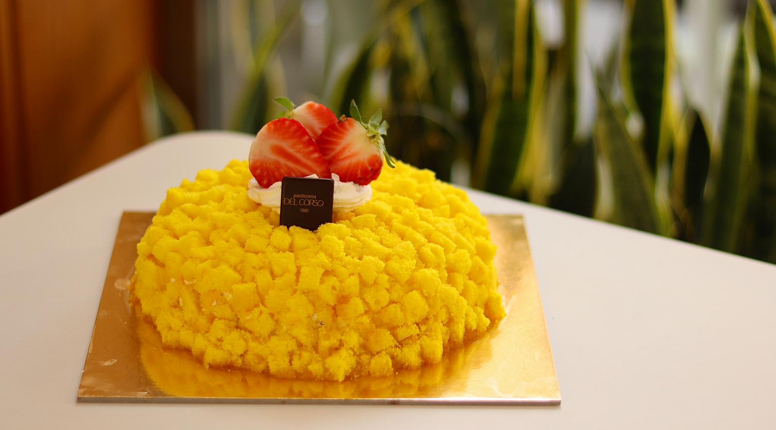Torta Mimosa a cupoletta, Pan Di Spagna e crema chantilly dedicata alle donne.